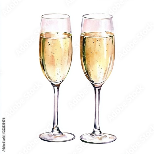 Watercolor champagne glasses on white background. Perfect idea for restaurants, cafes, cocktail guides, and recipe books, holidays, parties, and beverage branding projects