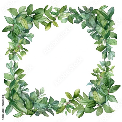 Watercolor decorative frame. Abstract background. Invitation, advertisement, thanks. Ornamental leaves. Generative AI.