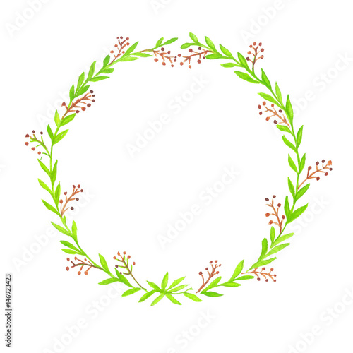 Watercolor Floral background With Hand Painted Leaves. Watercolor Leaf Branch backdrop. Text Frame.
