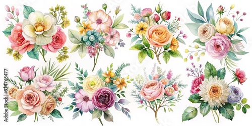 Watercolor Floral Bouquets Roses, Peonies, and Eucalyptus, Watercolor Bouquet, Floral Design, Floral Illustration