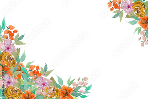 Watercolor flower border for wedding, birthday, card, background, invitation, wallpaper, sticker, decoration etc.