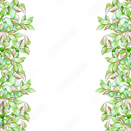 Watercolor frame with green leaves