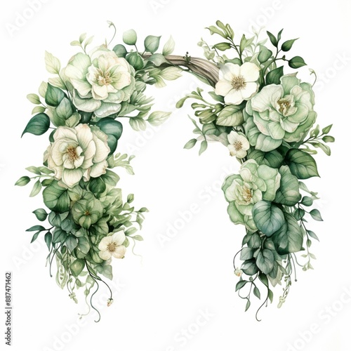 Watercolor garden arch with flowers. Illustration for wedding postcard, greetings card or invitation.