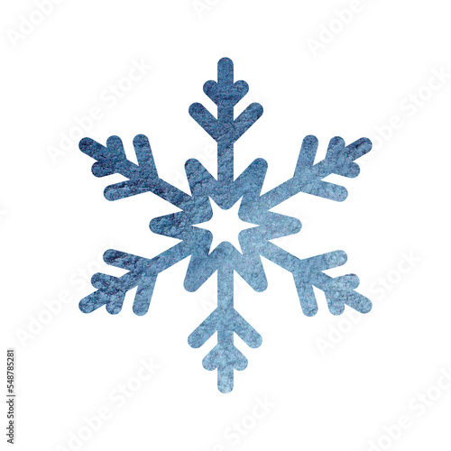 Watercolor hand painted illustration of snowflake. Isolated on transparent background