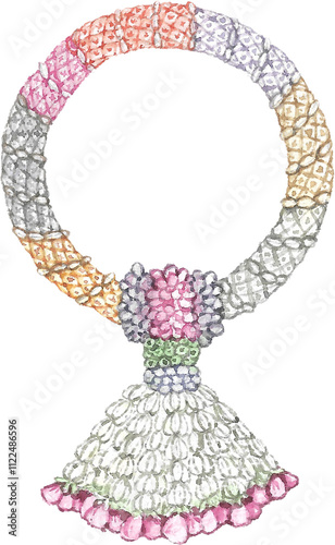 Watercolor Illustration Jasmine Traditional Thai Garland.