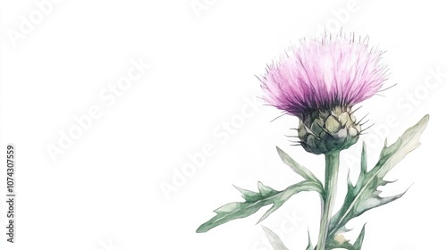 Watercolor illustration of a thistle flower Cirsium arvense as an isolated botanical element on a white background hand drawn