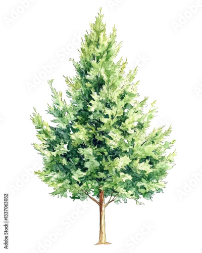Watercolor Illustration of an Arborvitae Tree – Hand-Painted Evergreen Art - Isolated on Transparent or White Background for Landscape and Architecture Drawing