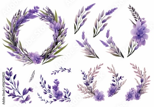 Watercolor Illustration of Lavender Flowers and Foliage