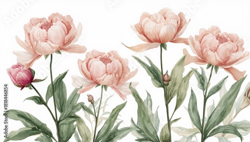 Watercolor illustration of pink peonies on a white background, ideal for editorial design