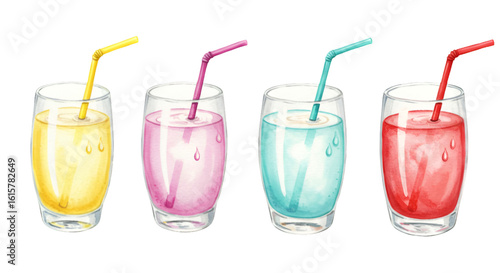 Watercolor Illustrative Drinks In Transparent Glasses On Abstract Background