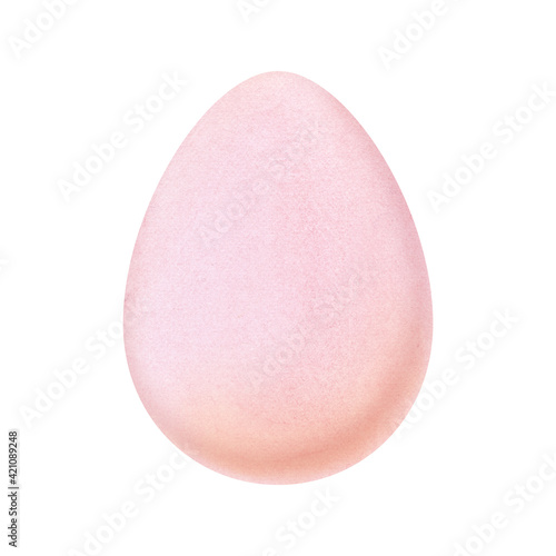 Watercolor image of one tender pink colored egg isolated on white background. Hand drawn illustration of traditional Easter treat. Symbol of spring holiday