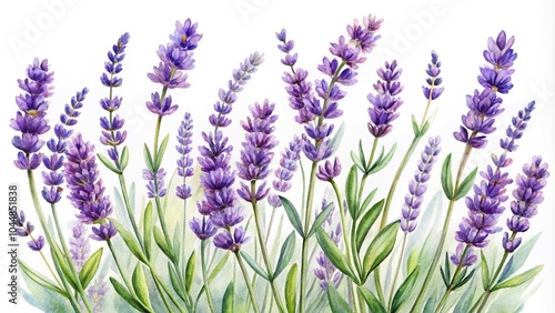 Watercolor lavender flower clipart with a floral Provence design, featuring forced perspective.