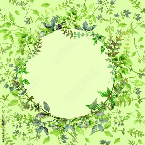 Watercolor logo, label, invitation card. From a set of flowers, herbs, rastenits, leaves, flowers. In vintage style. Botanical illustration