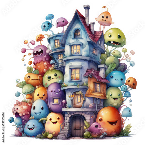 Watercolor monster house vector, clipart Illustration, Generative Ai