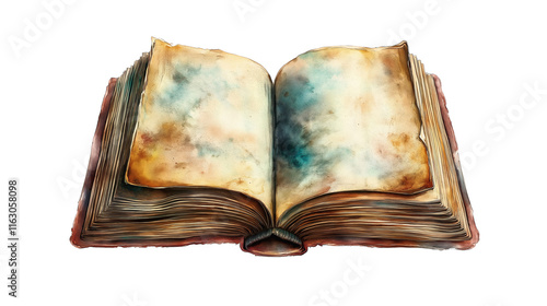 Watercolor open book with blank pages, vector illustration clip art isolated on a white background