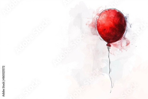 Watercolor painting of a red balloon with a white background