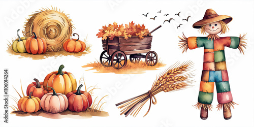 Watercolor painting of a rustic autumn field with gentle rolling hills, golden autumn trees, and a calm, serene atmosphere perfect for a peaceful fall experience.
