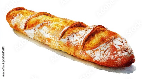 Watercolor painting of french bread on white background