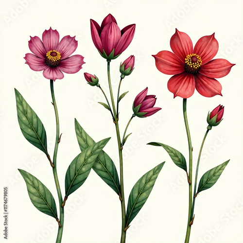 Watercolor painting of wildflowers, digital art illustration for wallpaper, background, design