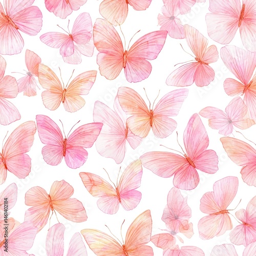 Watercolor Pastel Pink Butterflies Seamless Pattern on White Background