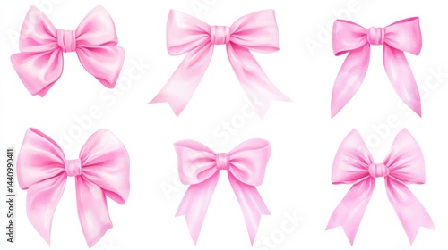 Watercolor pink ribbon frame with bow clip art set white background