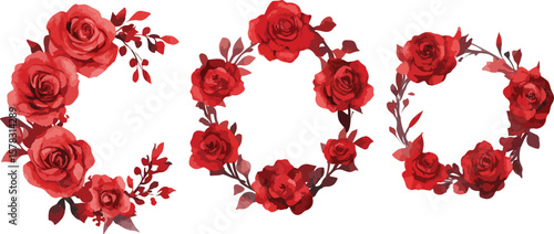 Watercolor red rose floral wreath collection for invitations and greetings design
