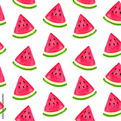 Watercolor seamless watermelon pattern. Hand drawn illustration on white background