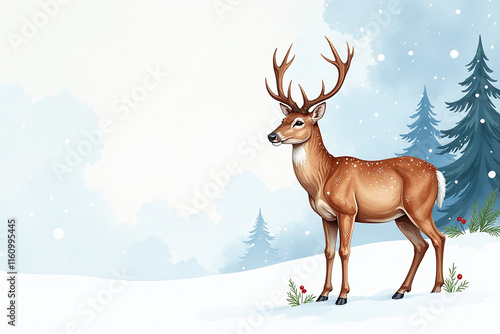 watercolour deer christmas background depicted banner festive