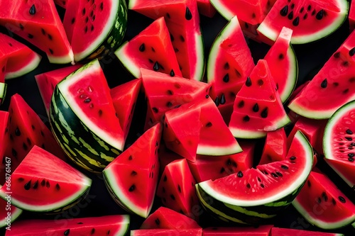 Watermelon slices are fresh and juicy. Generative AI