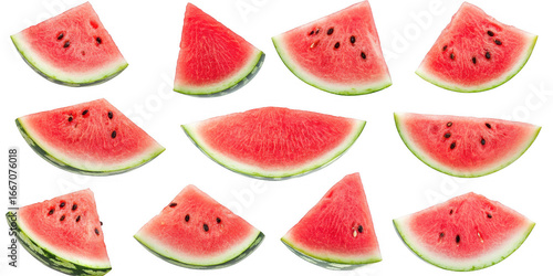 Watermelon slices arrangement on transparent png background