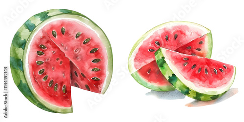 Watermelon Watercolor Illustration. Generative AI.