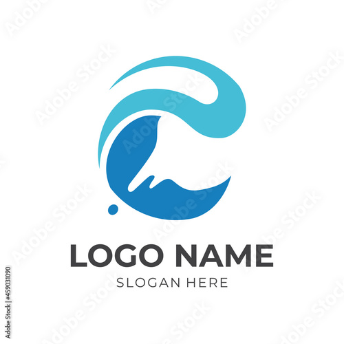 wave logo design with flat blue color style