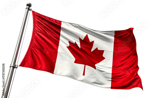 Waving Canadian Flag on Metal Pole Against White Sky