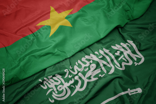 waving colorful flag of saudi arabia and national flag of burkina faso.
