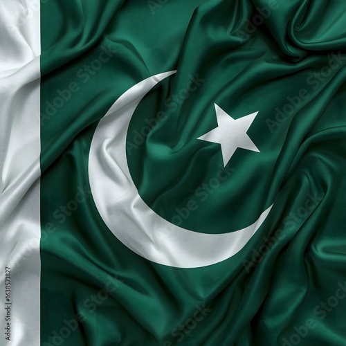 Waving Flag of Pakistan with Crescent and Star