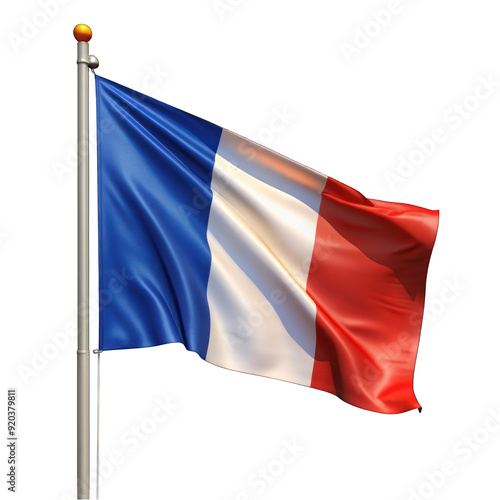 Waving french flag isolated on transparent background