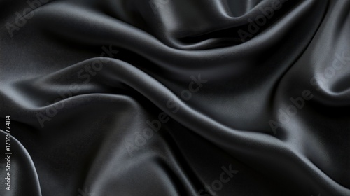 Wavy black satin fabric creates a smooth shiny and luxurious abstract background.