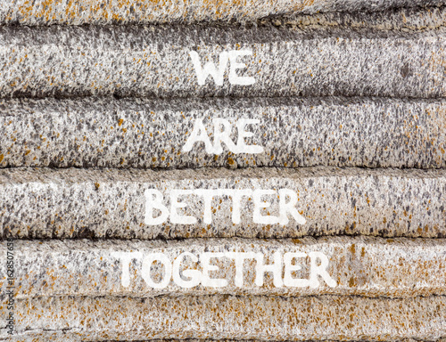 We are better together symbol. Concept words phrase We are better together on beautiful grey stone wall. Beautiful stone wall background. Business We are better together concept. Copy space.