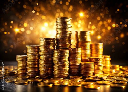 Wealth, Fortune, Abundance: Stack of Golden Coins, Close-Up Conceptual Photography