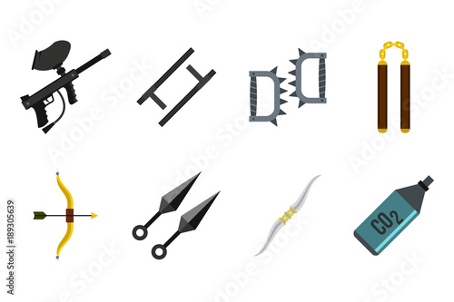 Weapons icon set, flat style