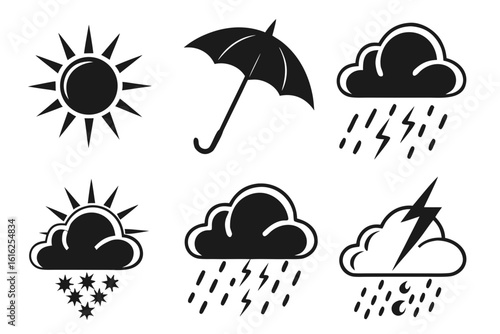 Weather Icons Collection Sun Rain Storm and Umbrella.