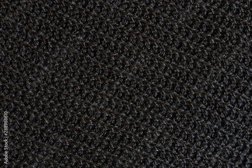 Weaving cotton threads on the example of warm black pantyhose. Cozy winter clothing. Natural fiber. Close-up
