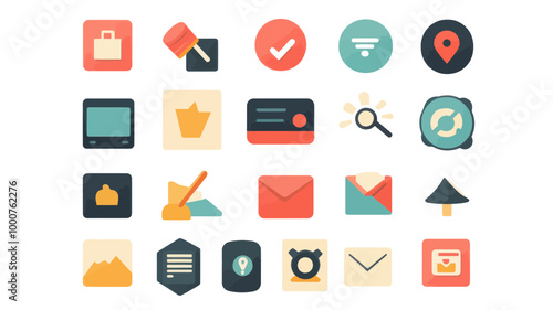 Web and UI Flat Icons Set - Colorful LUSHICONS Collection for App and Website Design, Includes Shopping, Search, Email, Navigation, and More