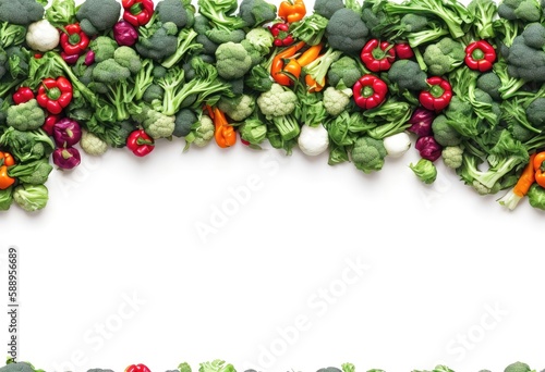 web banner for different colored vegetables in the shape of a frame with copy space for your text. generative AI