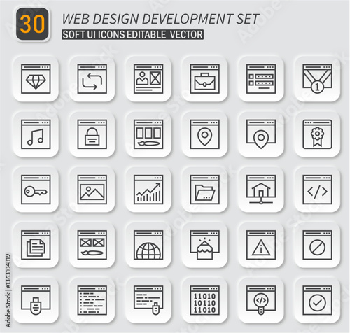Web Design and Development UI Icon Set with Editable Vectors for Modern Interface