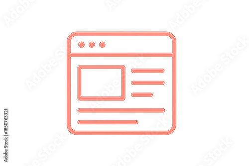 Website browser window icon showing a webpage interface with text and image placeholders in glowing neon red, transparent background
