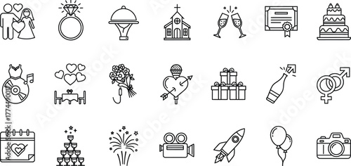 Wedding icons set vector outline style perfect for invitations