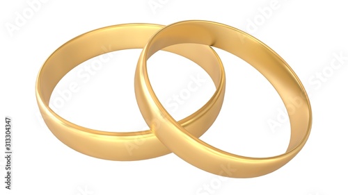 Wedding rings isolated on white background, 3D-rendering