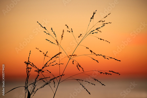 weeds grass silhouette and orange peach sunset