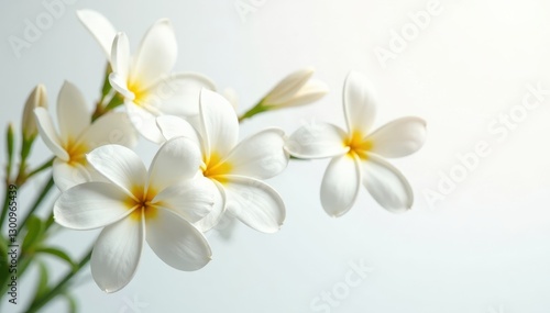Weightless jasmine flowers suspended in mid-air against stark white , jasmine, plant